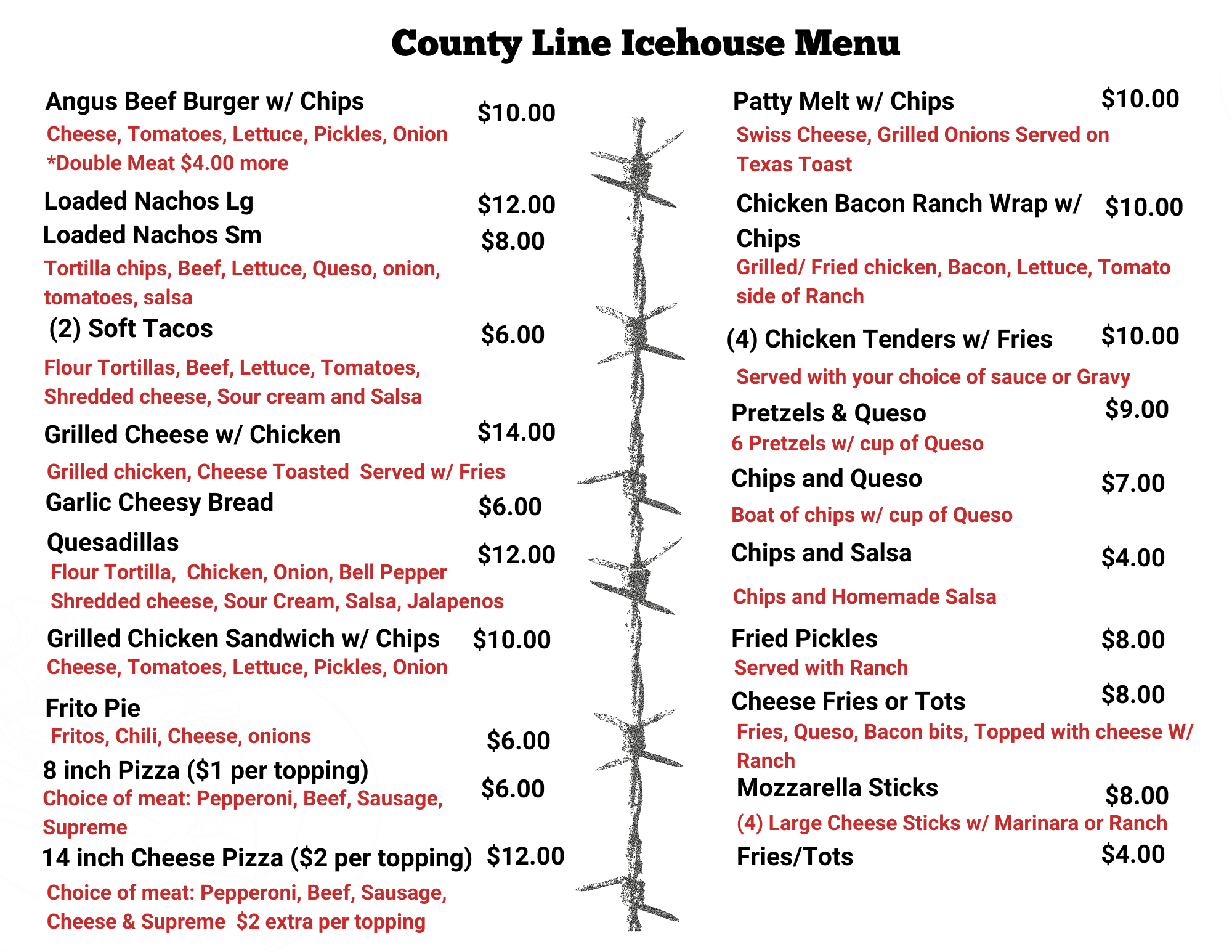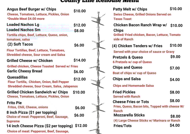 County Line Icehouse Menu